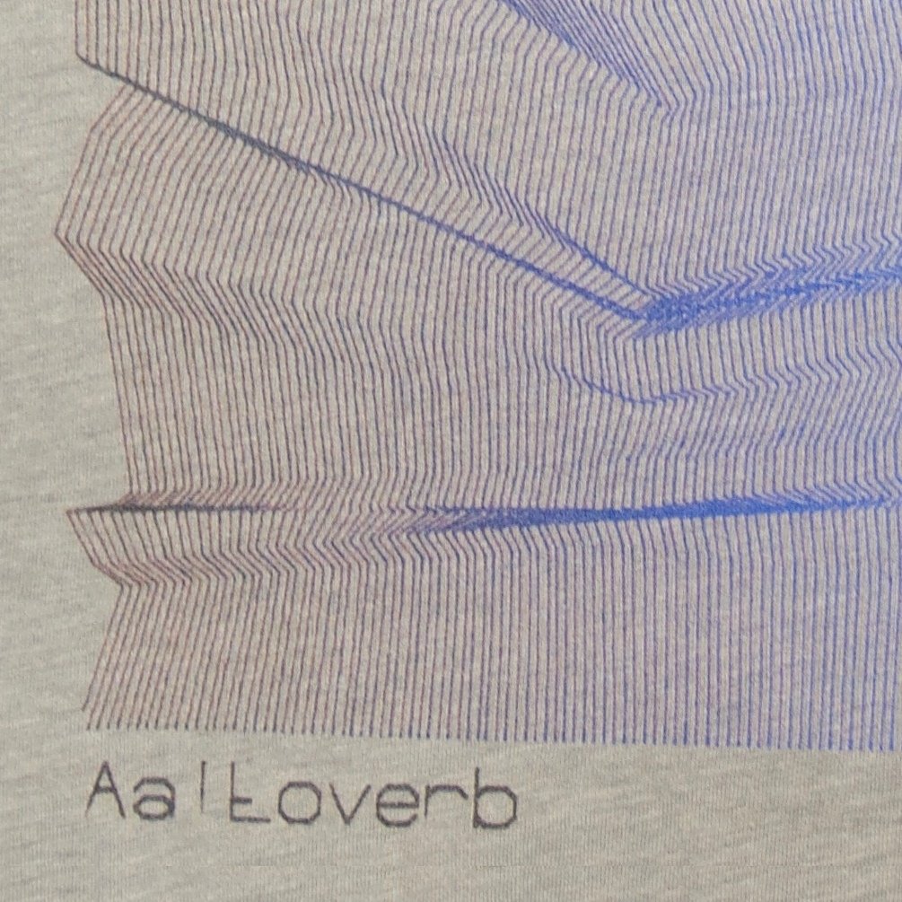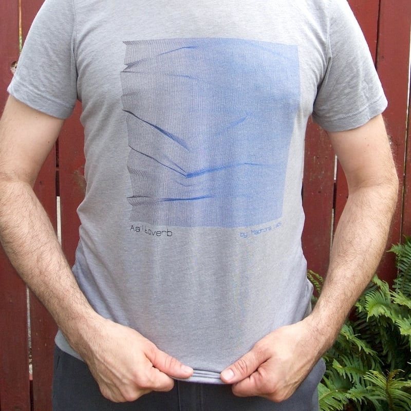 The Aaltoverb shirt: an original design by Leafcutter John, made on his homemade pen plotter. High res direct-to-garment printing on a silky-soft, grey tri-blend tee by Bella+Canvas.